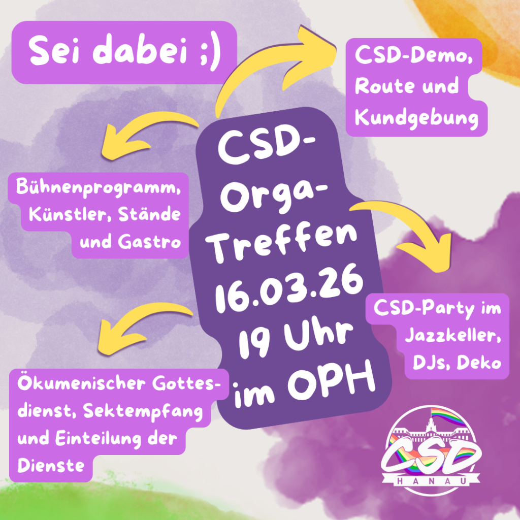Der CSD Hanau e.V. setzt sich seit seiner Gründung 2018 für Vielfalt, Akzeptanz und die Rechte der queeren Community in Hanau und dem Main-Kinzig-Kreis ein.
